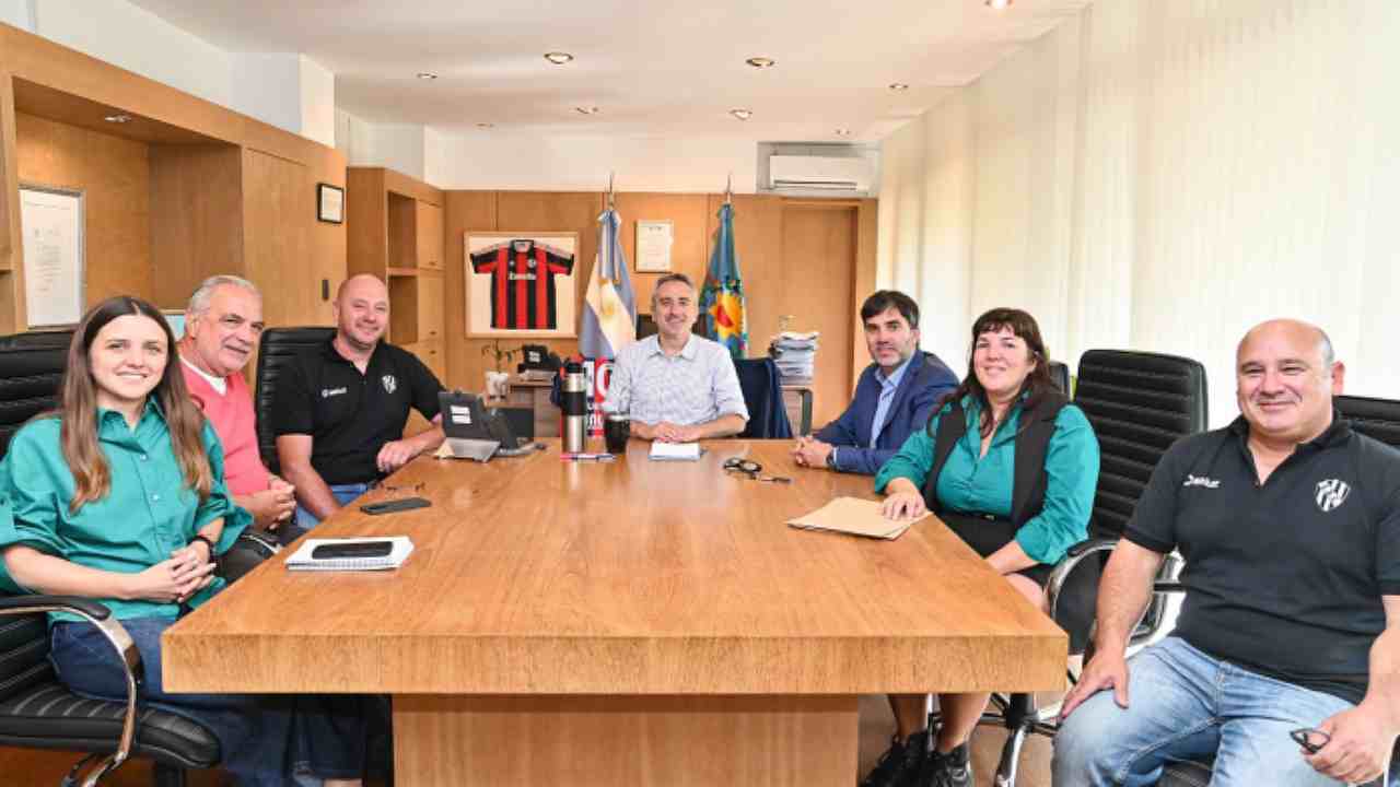 El primero de los convenios rubricados contempla una inversión provincial de más de 115 millones de pesos para la finalización de la tribuna del campo de deportes del Club Deportivo Castelli, institución que esta semana celebró su 108º aniversario. La firma fue encabezada por Larroque y Echarren junto al subsecretario de Hábitat, Rubén Pascolini y contó con la presencia del presidente el club, Julián coronel, y del integrante de la comisión directiva, Martín Bourras.